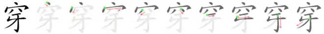 - Rangement dans les dictionnaires : Clé : 穴+ 4 trait(s) - Nombre total de traits : 9