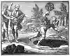- Noter que le tableau oraculaire montre non pas un humain, mais un cerf (鹿) tombant dans la fosse. Le cerf s’est simplifié en un cercle (figurant l’œil) traversé par un « humain » (人, figurant les deux cornes), l’ensemble étant ensuite assimilé à l’humain.