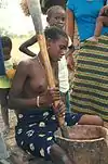 - Kun’yomi : うすずく (usuzuku), つく (tsuku)