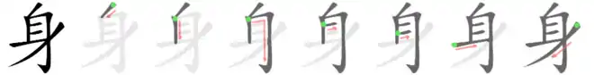 À gauche : 射, 躬, 躭, 躮, 躯, 躰, 躱, 躲, 躳, 躴, 躵, 躷, 躸, 躹, 躺, 躻, 躼, 躶, 躽, 躾, 躿, 軀, 軁, 鵢, 軂, 軃, 軅, 軄, 軆, 軇, 軈, 軉