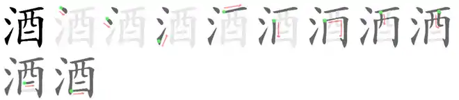 - Kun’yomi : さけ (sake), さか- (saka), き* (ki), さ* (sa), し* (shi)
