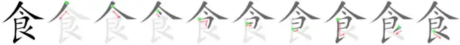 - Composés de 食 dans le ShuoWen : 䭆, 𩚏, 飤, 𩛥