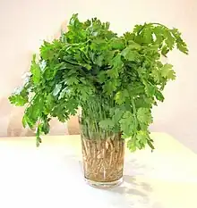 - (Cuisine) Feuille de coriandre, persil chinois, persil arabe.