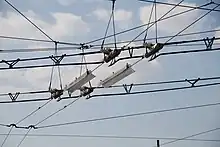 - (Chemin de fer) Caténaire.