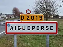Panneau d'agglomération de Aigueperse dans le Puy-de-Dôme.