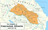 - (Histoire) Synonyme de Albanie caucasienne, royaume antique couvrant le territoire actuel de la république d’Azerbaïdjan, de la Géorgie et le sud du Daghestan.