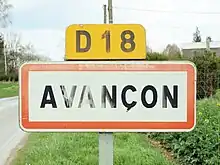 Panneau d'agglomération d’Avançon dans les Ardennes