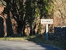 Panneau d'entrée dans le hameau de Blanaz.