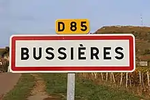 Panneau d'entrée dans Bussières, Saône-et-Loire.