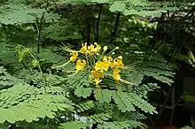 Fleurs et feuilles de Caesalpinia pulcherrima.
