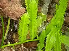 Détails de frondes de Caulerpa taxifolia.