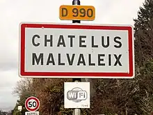 Panneau d'agglomération de Châtelus-Malvaleix.