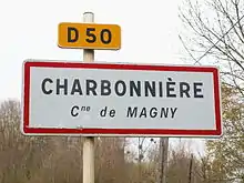 Panneau d’agglomération de Charbonnière, hameau de Magny