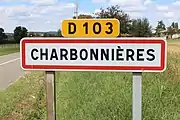 Panneau d'entrée dans Charbonnières, Saône-et-Loire