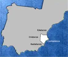— (Pline l'Ancien, Naturalis Historia, III)- Sur la côte on trouve : Urci, Barea, attribuée à la Bétique; la région Mavitanienne, la région Deitancienne, la région Contestanienne; Carthagène, colonie, du promontoire de laquelle, appelé promontoire de Saturne, il y a un trajet de 187.000 pas jusqu'à Césarée, ville de la Mauritanie. Sur le reste de la côte, le fleuve Tader, Illici, colonie jouissant de l'immunité, d'où le nom du golfe Illicitan ; de cette ville relèvent les Icositans. — (traduction)