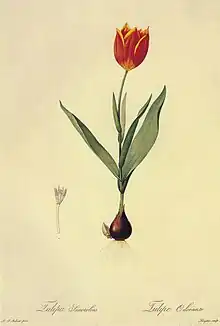 - (Botanique) Nom de la tulipe odorante (Tulipa suaveolens (wikispecies), Roth), la seule tulipe qui ait de l'odeur, et qu'à tort on a confondue avec la tulipe bossuelle, ou tulipe campsopétale, mieux nommée tulipe de Gessner.