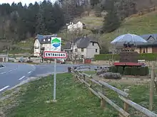 Signalisation occitane à l'entrée de Entraygues (officiellement Entraygues-sur-Truyère)-Entraigas.