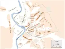 - (Antiquité) (Géographie) Colline de Rome, l’une des « sept collines » primitives associées à la fête du Septimontium.