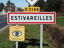 Panneau de limite d'agglomération, d’Estivareilles dans l’Allier.