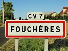Panneau d'agglomération de Fouchères dans l'Yonne