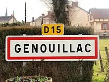 Panneau d'agglomération de Genouillac dans la Creuse.
