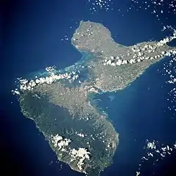 Vue satellite de la Guadeloupe avec Grande-Terre à l’est.