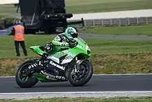 - (Motocyclisme) Moto de la marque Kawasaki.