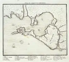 Plan de Cadix montrant l’île de Léon (León) au sud.