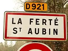 Panneau routier de limite d'agglomération de la Ferté-Saint-Aubin.