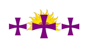 Drapeau de La Raza ou de l’Hispanité adopté en 1933 par l’Espagne et l’ensemble des pays hispano-américains.