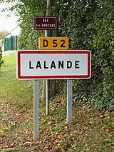 Panneau d'agglomération de Lalande (Yonne)
