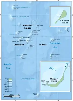 Carte du territoire des Laquedives avec les îles Amindivi et Minicoy