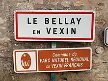 Panneau d'agglomération du Bellay-en-Vexin.