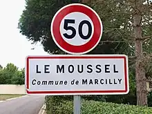 Panneau d'agglomération du Moussel.