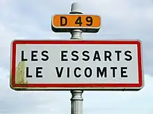 Panneau d'agglomération des Essarts-le-Vicomte.