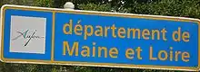 Panneau de limite départementale avec la mention « département de Maine et Loire ».