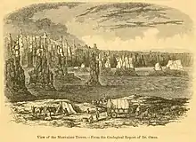 La région des Mauvaises Terres qui s’étend sur les deux rives de la rivière Blanche jusqu'aux Montagnes Noires, et aux monts du Renard, est une espèce de monde à part, une large vallée qui semble avoir été creusée d'abord par une immense faille verticale, puis modelée par une longue et incessante action d’agents démidateurs (sic).