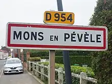 Panneau de limite d’agglomération de Mons-en-Pévèle.