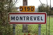 Panneau d'entrée dans Montrevel, dans le Jura.
