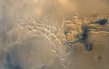 - Réseau de canyons entrecroisés situé sur la planète Mars, à l’ouest de Valles Marineris.