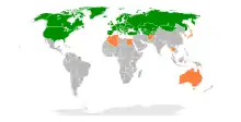 États participants (vert) et partenaires (orange) de l’OSCE.