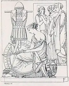 Une représentation de Pénélope, au centre avec l'arc d'Ulysse. (sens 1)