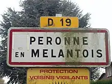 Panneau de limite d’agglomération de Péronne-en-Mélantois.