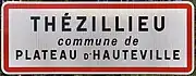 Mention de la commune à l'entrée du village de Thézillieu.