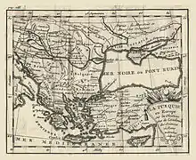 Carte de la Turquie d’Europe, du milieu du XVIIIe siècle, indiquant le Pont-Euxin.