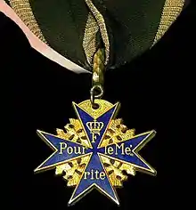- Allemand : Pour le Mérite (de), Für das Verdienst (de)