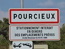 Panneau d'agglomération de Pourcieux.