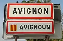 Panneau d’entrée bilingue français et provençal de l’agglomération d’
