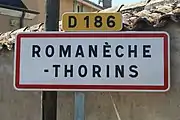Romanèche-Thorins \ʁo.ma.nɛʃ.to.ʁɛ̃s\