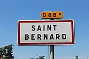 Panneau d'entrée dans Saint-Bernard, Ain.